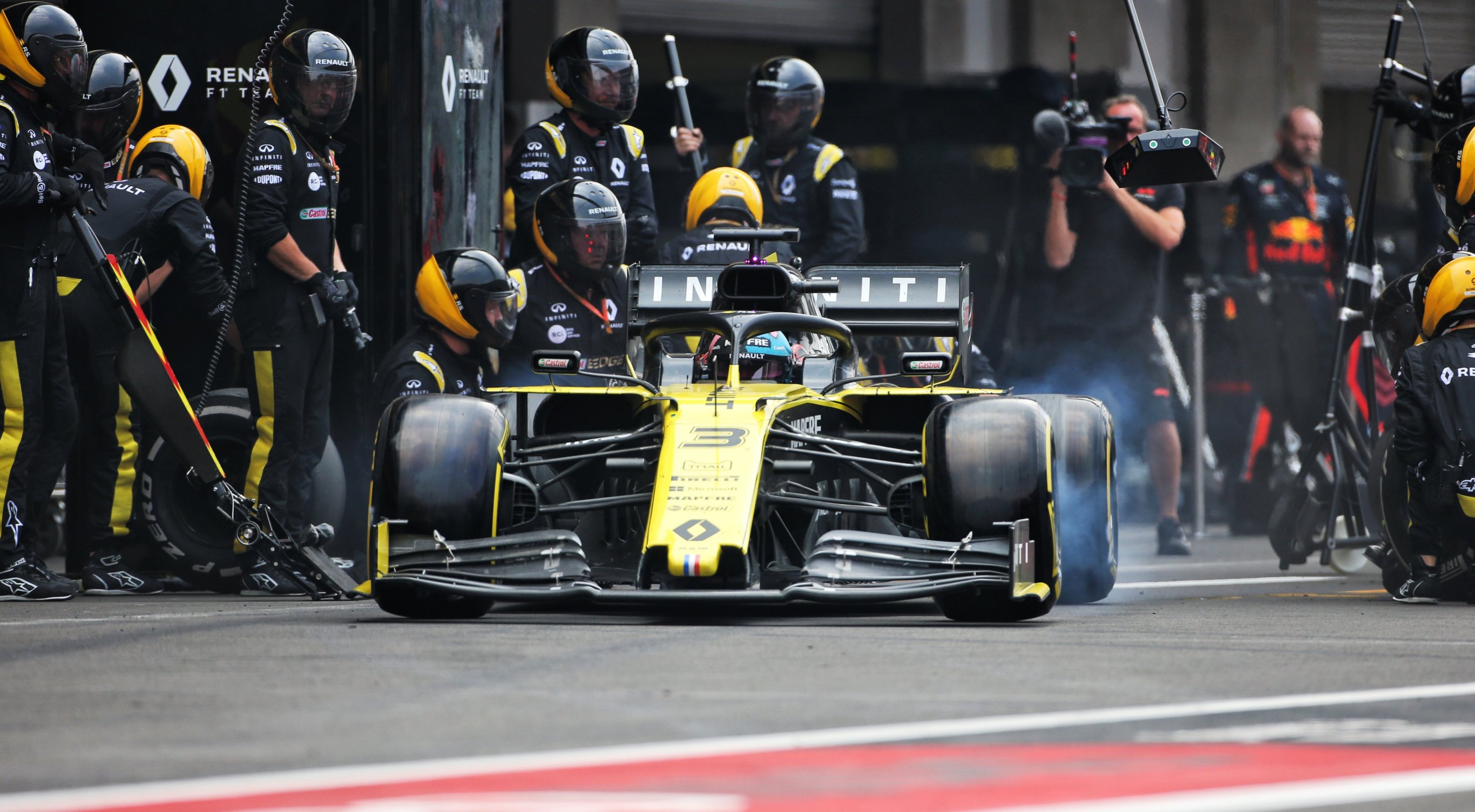 Home hero Pérez sat within two seconds of Hamilton for much of the first half of the race without ever getting close to attempt a move. Red Bull then attempted to create a tyre deficit for the second stint, leaving him out for a further 11 laps after Hamilton pitted. Despite closing in rapidly, he was again unable to pass in the closing laps, but was nonetheless delighted with third place as he became the first Mexican driver to climb onto the podium at the Mexican Grand Prix.